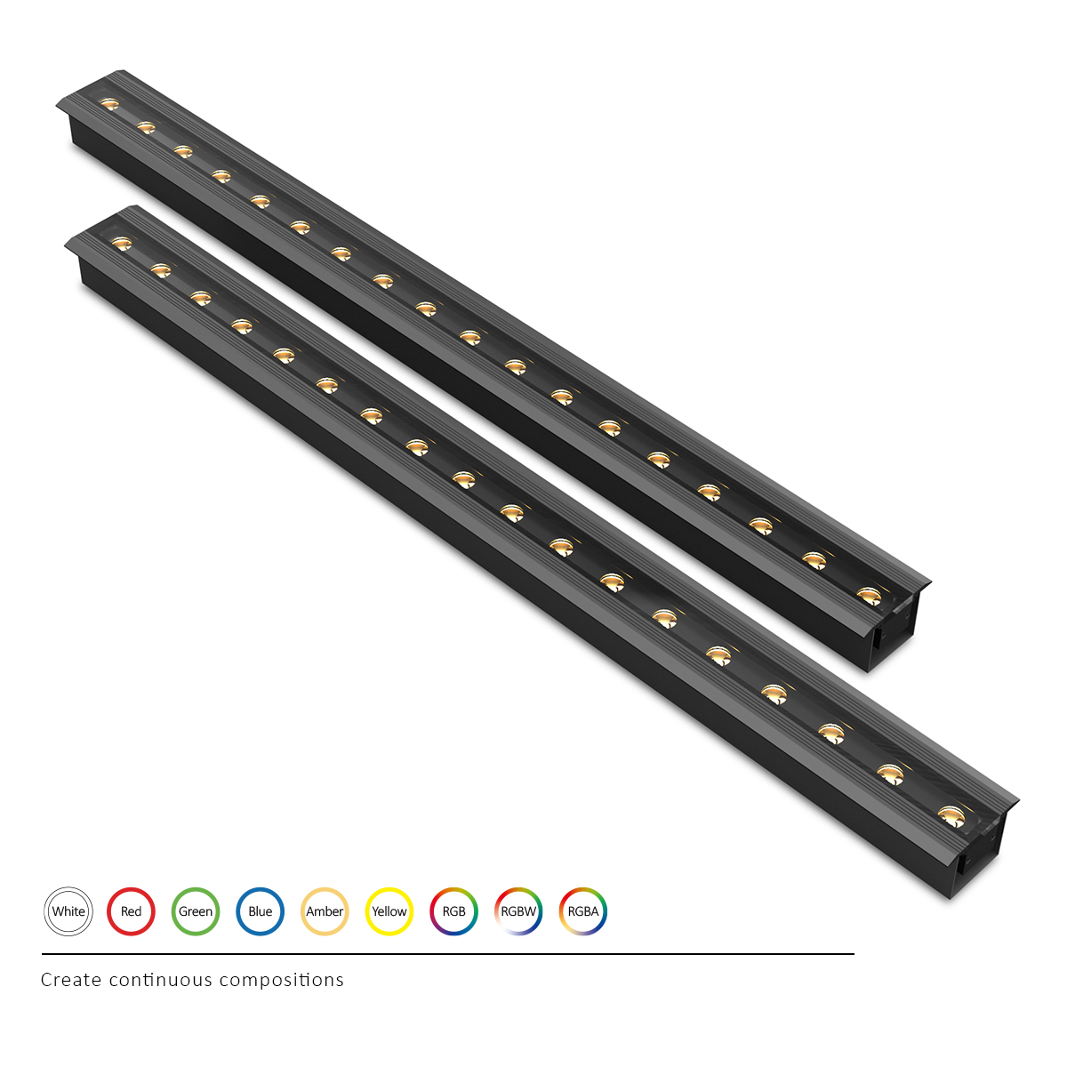 Offers the possibility of creating continuous lines without interference, Homogeneous lighting near the ends of each module. Without darklight, the arrangement of the diodes is designed to maintain the same pitch between each diode, even between the last ones at each end. With support for RGB, RGBW, RGBA, and a wide range of monochromatic options, as well as control protocols like DMX and RDM, this fixture adapts to both fixed and dynamic lighting installations. -