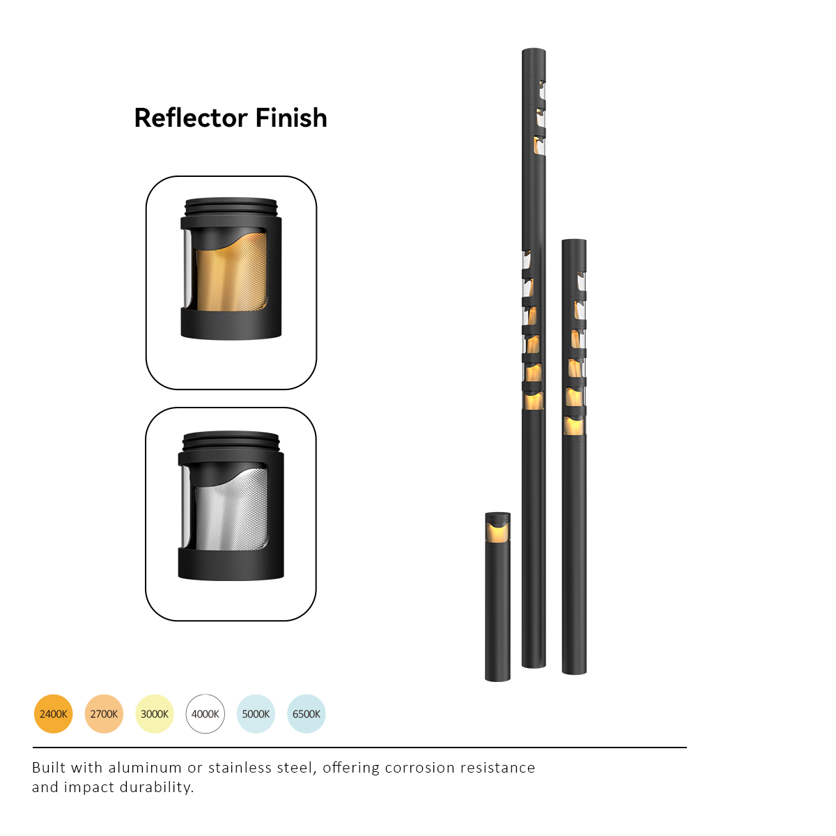 Combining modular flexibility with precision optics, each module integrates micro-faceted reflectors or optional anti-glare accessories (silver or gold reflectors) for refined light control and reduced glare, ensuring visual comfort in outdoor environments. From warm 2200K tones for natural parks to 4000K neutral whites for modern plazas, LumiTower seamlessly blends light, architecture, and sustainability. -